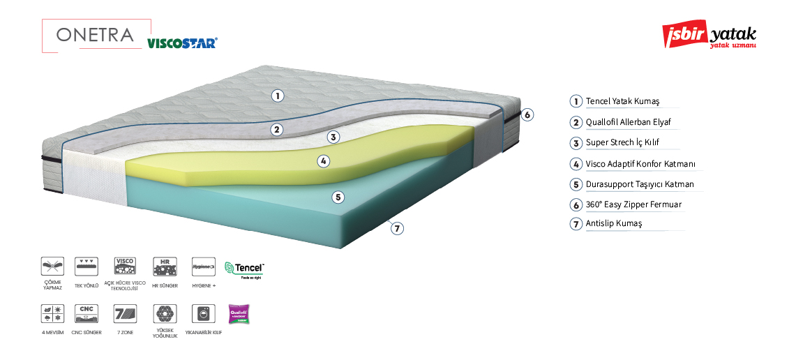 - Onetra, İşbir’in visco yatak deneyimini sunmak üzere tasarladığı özel modelidir.